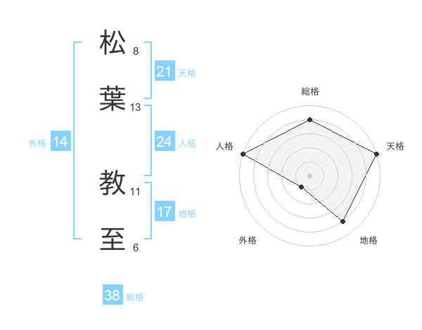松葉 教至さんの総格は38画の4点!