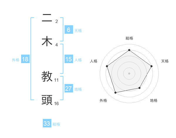 二木 教頭さんの総格は33画の4点!