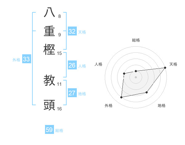 八重樫 教頭さんを姓名の画数から五運を鑑定