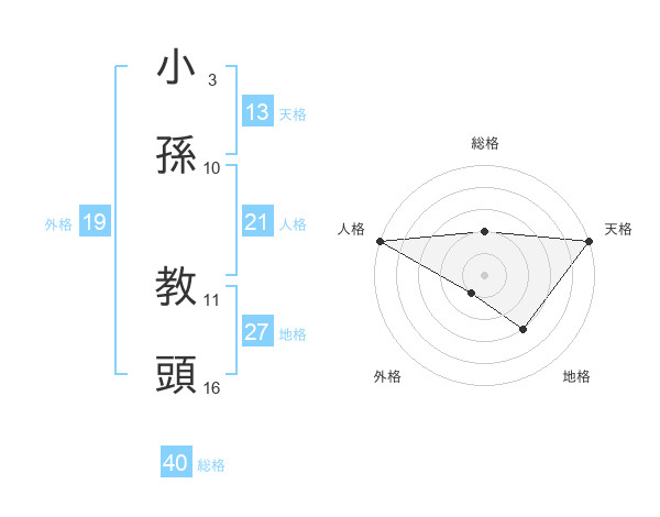 小孫 教頭さんの天格は13画の5点!