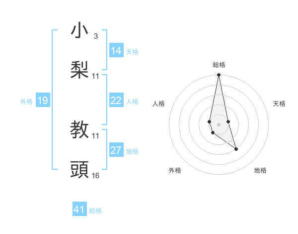 小梨 教頭さんの総格は41画の5点!