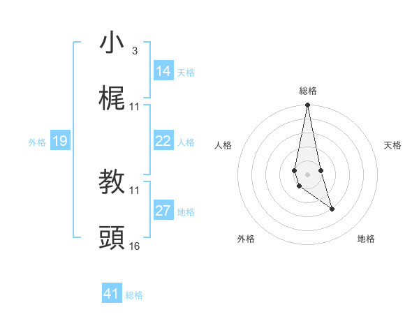小梶 教頭さんの総格は41画の5点!