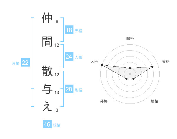仲間 散与えさんを姓名の画数から五運を鑑定
