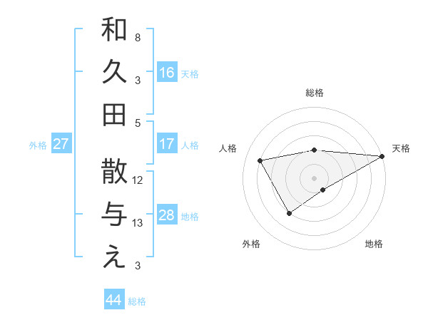 和久田 散与えさんを姓名の画数から五運を鑑定