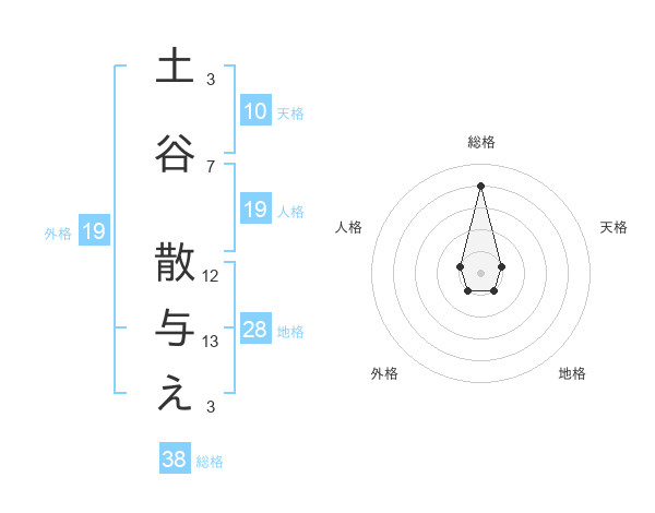土谷 散与えさんの総格は38画の4点!