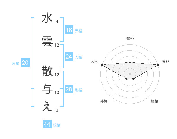 水雲 散与えさんを姓名の画数から五運を鑑定