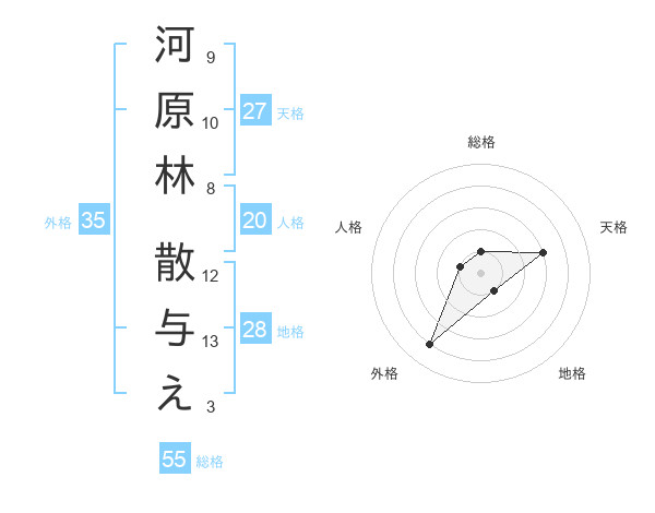 河原林 散与えさんの総格は55画の1点!