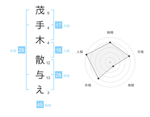 茂手木 散与えさんを姓名の画数から五運を鑑定