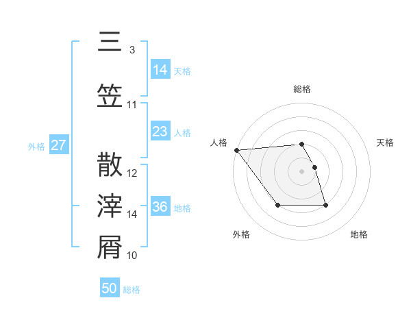 三笠 散滓屑さんを姓名の画数から五運を鑑定