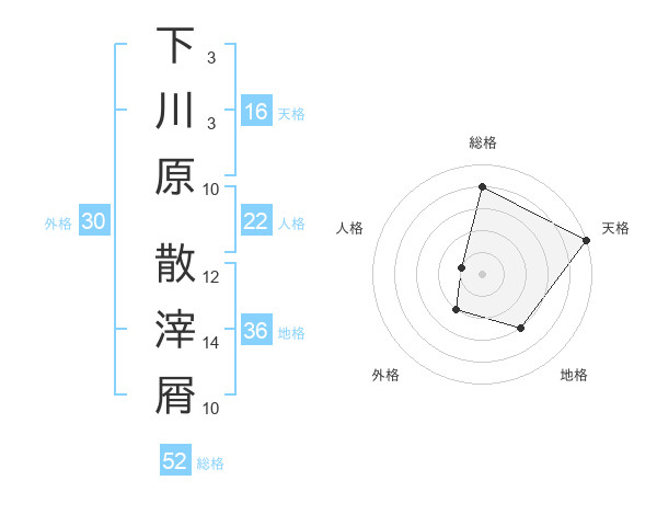 下川原 散滓屑さんを姓名の画数から五運を鑑定