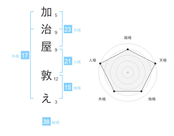 加治屋 敦えさんの天格は23画の5点