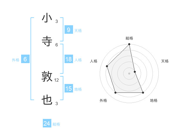 小寺 敦也さんの総格は24画の5点