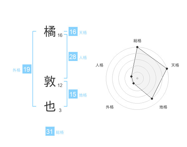 橘 敦也さんの総格は31画の5点!
