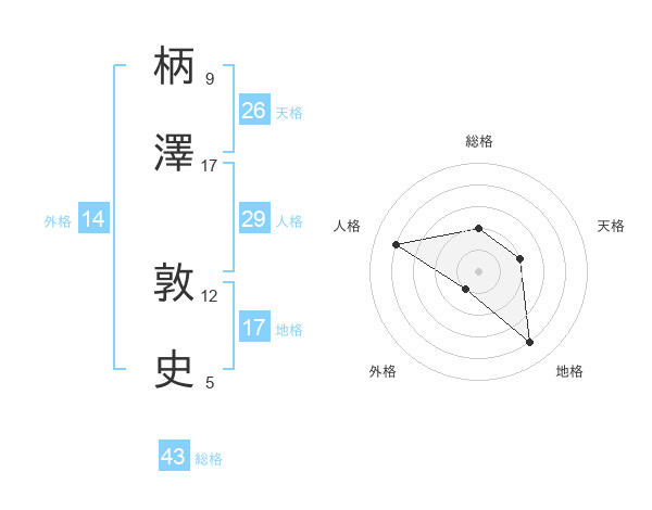 柄澤 敦史さんを姓名の画数から五運を鑑定