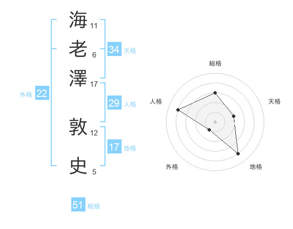 海老澤 敦史さんを姓名の画数から五運を鑑定