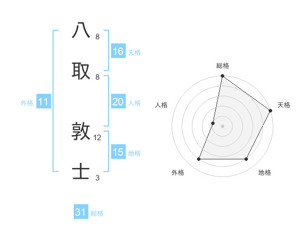 八取 敦士さんの総格は31画の5点!