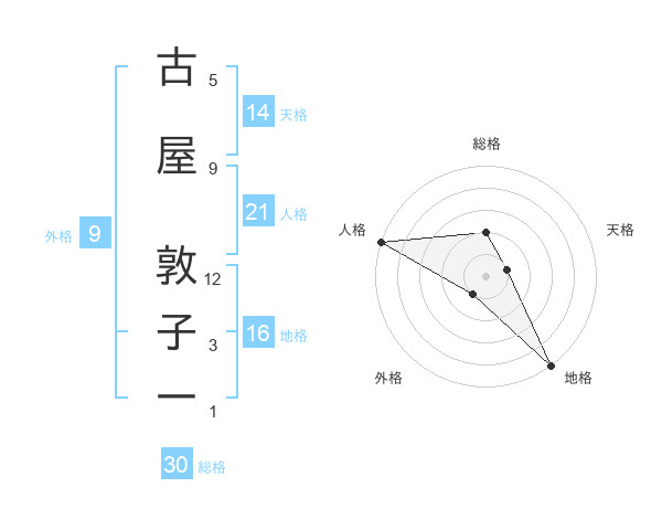 古屋 敦子一さんの総格は30画の2点!