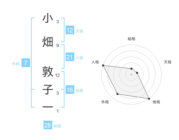小畑 敦子一さんを姓名の画数から五運を鑑定