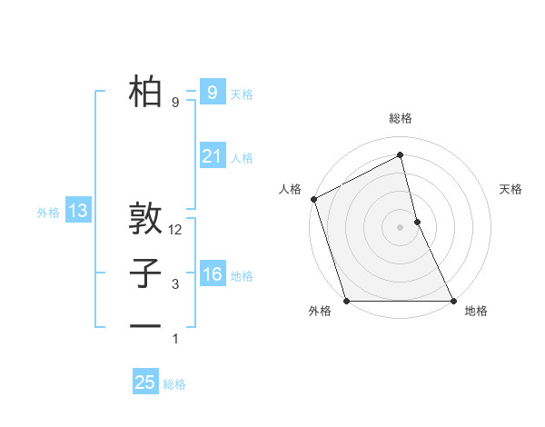 柏 敦子一さんの外格は13画の5点!