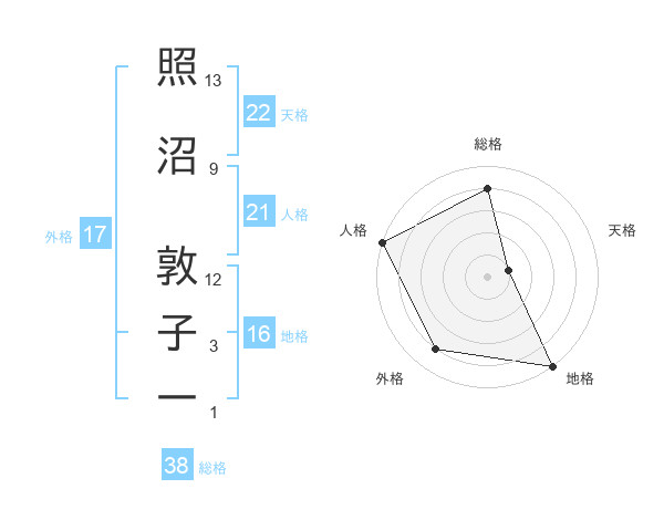 照沼 敦子一さんの総格は38画の4点!