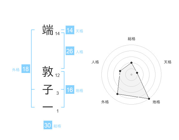 端 敦子一さんの外格は18画の4点!