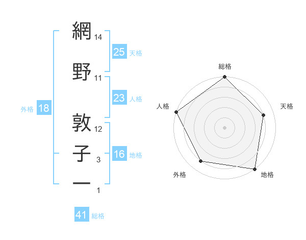 網野 敦子一さんを姓名の画数から五運を鑑定