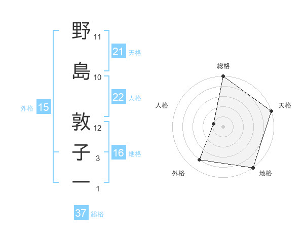 野島 敦子一さんの総格は37画の5点!