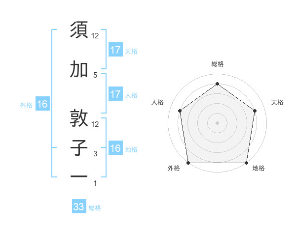 須加 敦子一さんを姓名の画数から五運を鑑定