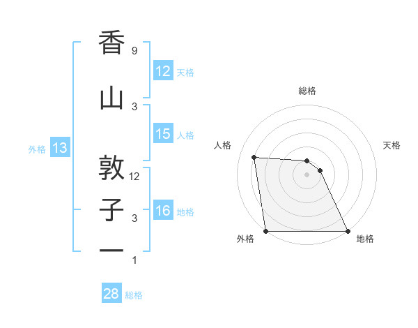 香山 敦子一さんを姓名の画数から五運を鑑定