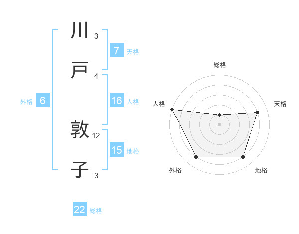川戸 敦子さんを姓名の画数から五運を鑑定