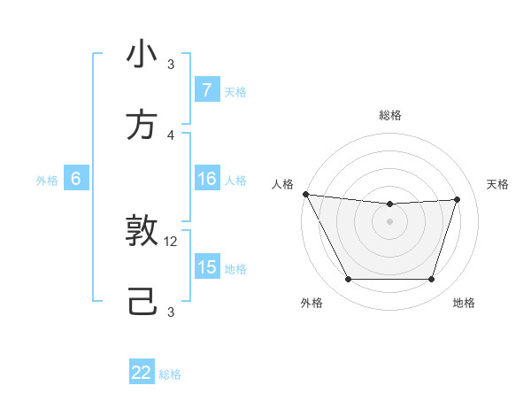 小方 敦己さんの総格は22画の1点!