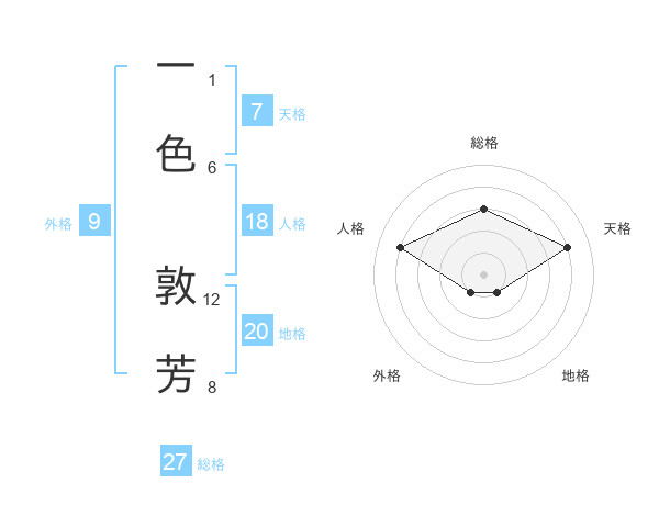 一色 敦芳さんを姓名の画数から五運を鑑定