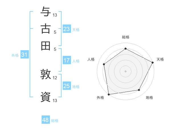 与古田 敦資さんを姓名の画数から五運を鑑定