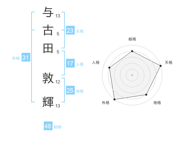 与古田 敦輝さんを姓名の画数から五運を鑑定