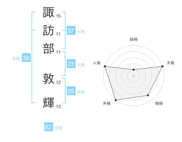 諏訪部 敦輝さんを姓名の画数から五運を鑑定