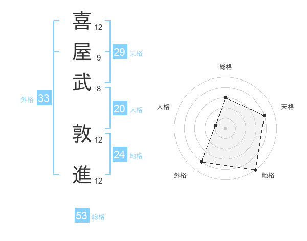 喜屋武 敦進さんを姓名の画数から五運を鑑定