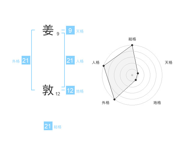 姜 敦さんの総格は21画の5点!