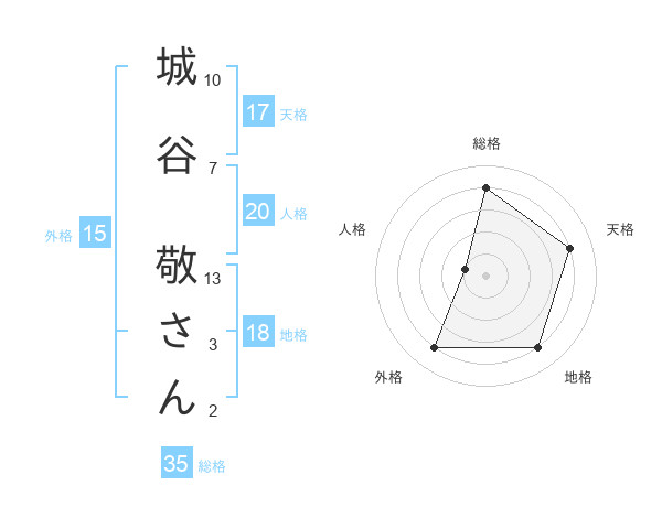 城谷 敬さんさんの総格は35画の4点!