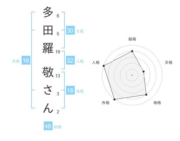 多田羅 敬さんさんを姓名の画数から五運を鑑定