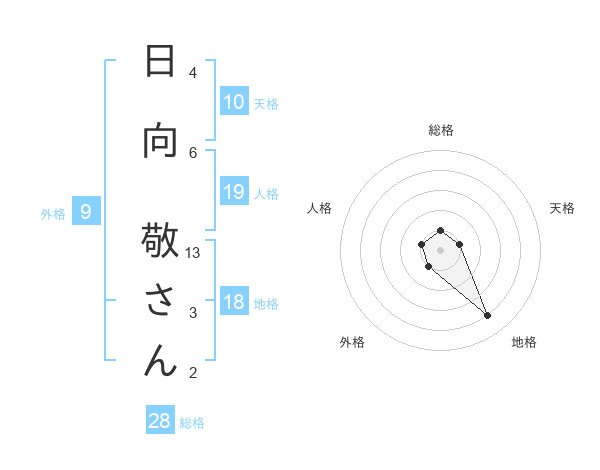 日向 敬さんさんの総格は28画の1点!