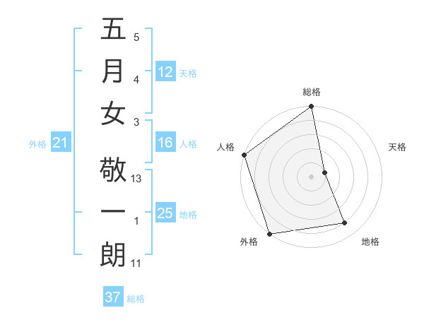 五月女 敬一朗さんを姓名の画数から五運を鑑定