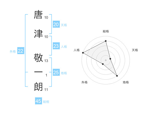 唐津 敬一朗さんの総格は45画の4点!