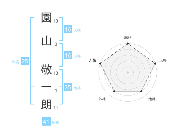 園山 敬一朗さんを姓名の画数から五運を鑑定
