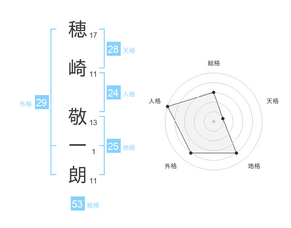 穂崎 敬一朗さんの総格は53画の3点!