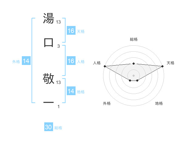 湯口 敬一さんを姓名の画数から五運を鑑定
