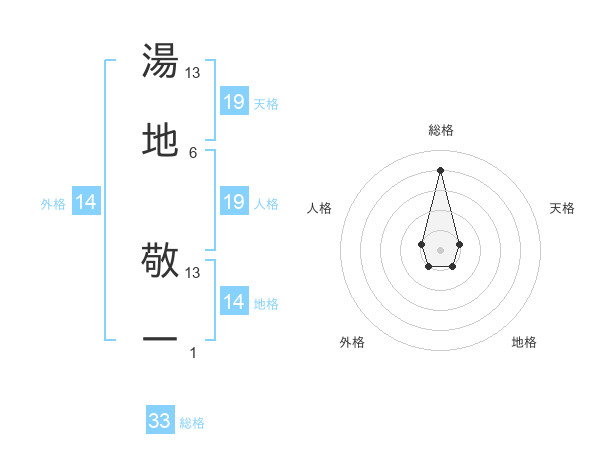 湯地 敬一さんの総格は33画の4点!