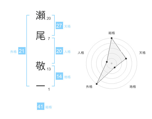 瀬尾 敬一さんを姓名の画数から五運を鑑定
