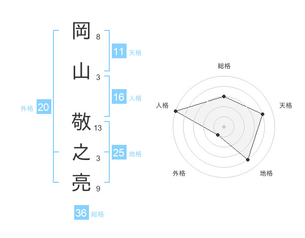 岡山 敬之亮さんを姓名の画数から五運を鑑定