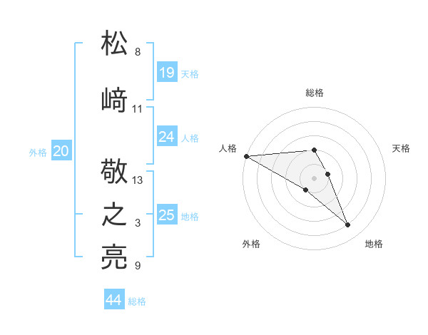 松﨑 敬之亮さんの総格は44画の2点!