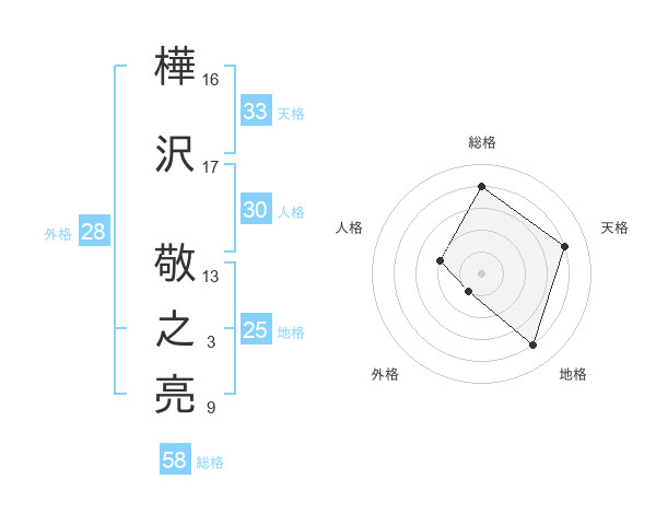 樺沢 敬之亮さんを姓名の画数から五運を鑑定